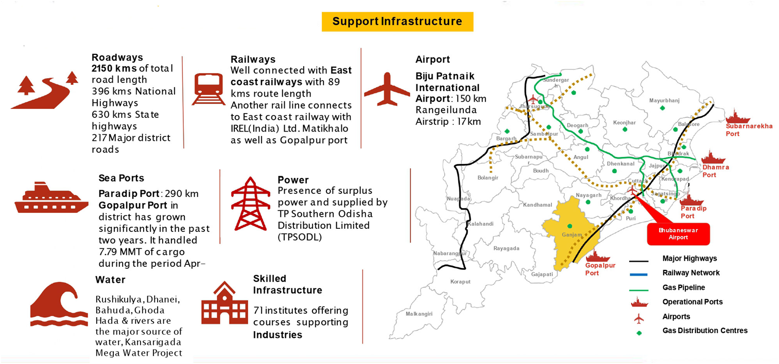The District Industries Centre, Ganjam at Berhampur provides various support and services are being to prospective entrepreneurs for establishment of Micro, Small & Medium Enterprises in the District through various schemes.