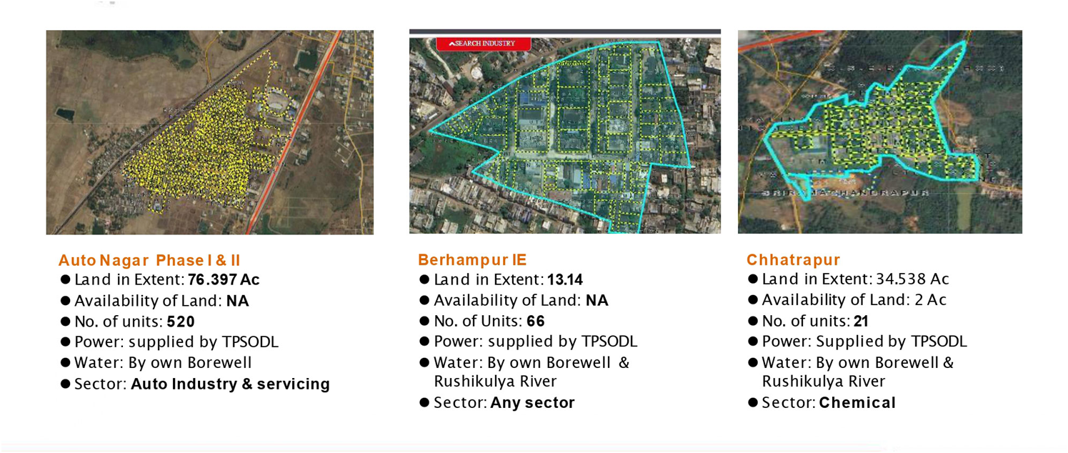 | 4 | Industrial Estate, Chhatrapur, Ganjam | 34.538 | 25.507 | 21.765 | 3.742 (Scattered) | 25 | 07 | 03 |
